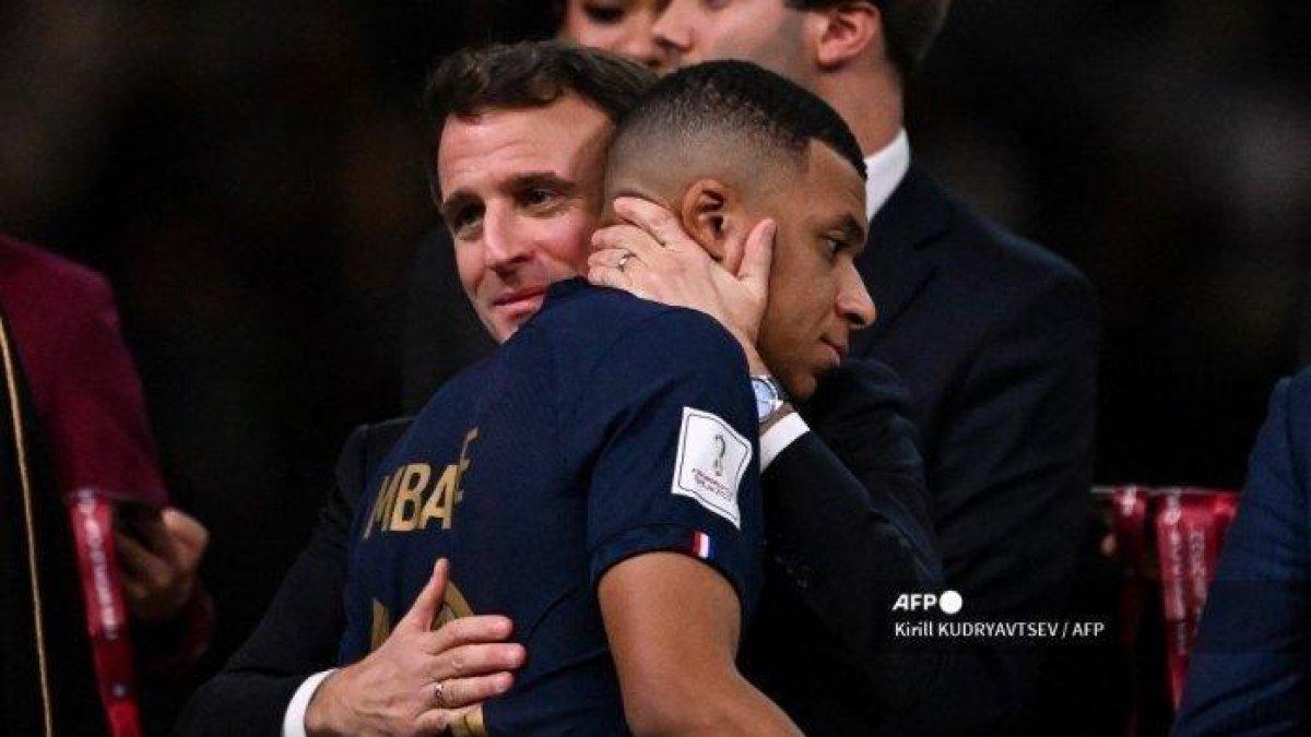 Presiden Prancis Emmanuel Macron turun ke lapangan dan menenangkan Mbappe setelah gagal membawa Prancis menjadi juara.