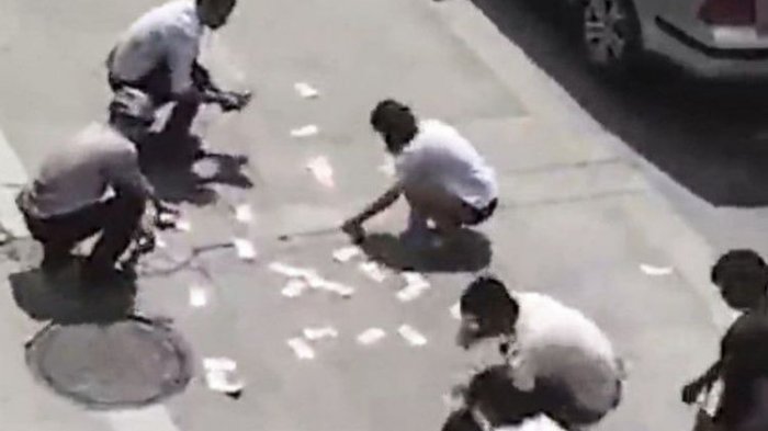 Warga Quanzhou di Provinsi Fujian, China, menyerbu uang sekitar 100.000 yuan atau Rp 220,9 juta yang berhamburan ke jalanan.