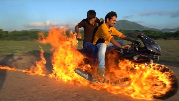 Viral di medsos, seorang YouTuber di India sengaja membakar motornya untuk meniru adegan pada film Ghost Rider.