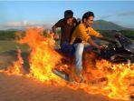 Viral di Medsos, Youtuber Tiru Adegan Ghost Rider Naik Motor dengan Ban Terbakar