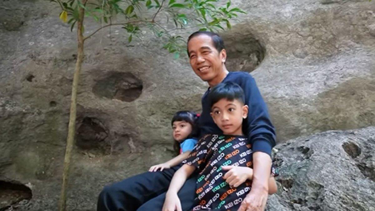 Momen Presiden Jokowi dan Jan Ethes asyik menyusuri Gua Batu Cermin di Labuan Bajo sambil jalan jongkok.