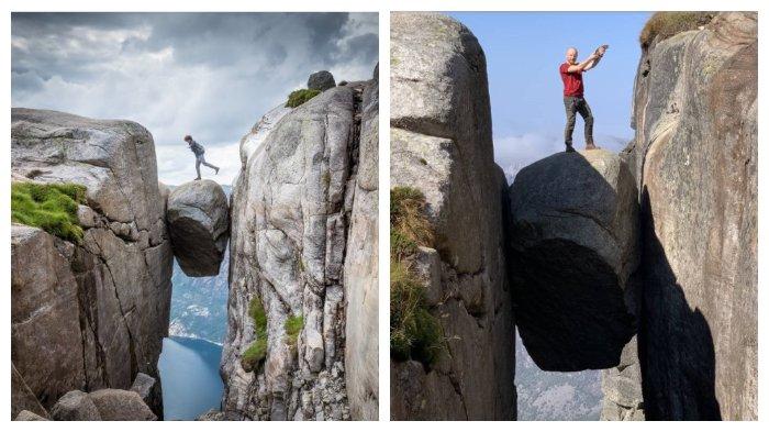 Fakta Unik Kjeragbolten, Batu Terjepit di Jurang Sedalam 984 Meter yang jadi Spot Foto Instagramable