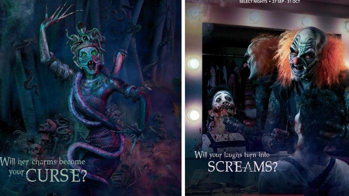 Para pengunjung yang datang dapat merasakan sensasi bermain di taman bermain yang mencekam saat malam hari lewat acara Halloween Horror Nights 9.