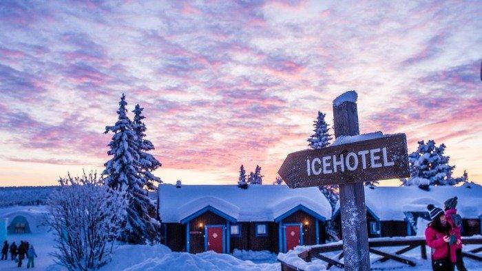 Ichotel bagaikan rumah musim dingin menakjubkan. Lokasinya sekitar 125 mil di utara Lingkaran Arktik, di tepi Sungai Torne.