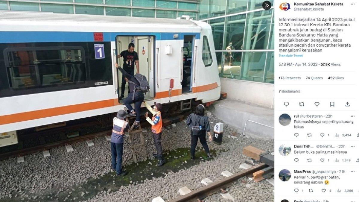 Kereta Tabrak Jalur Buntu Stasiun Bandara Soekarno-Hatta, Foto-fotonya Viral di Medsos