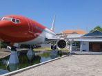 Viral di media sosial sebuah pesawat tampak terparkir di depan rumah warga Desa Pelem, Kecamatan Kertosono, Kabupaten Nganjuk, Jawa Timur.