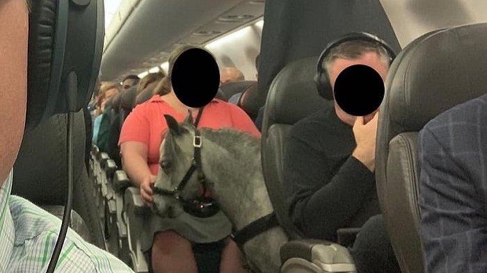 Penumpang pesawat American Airlines terkejut melihat ada kuda mini ikut naik pesawat.