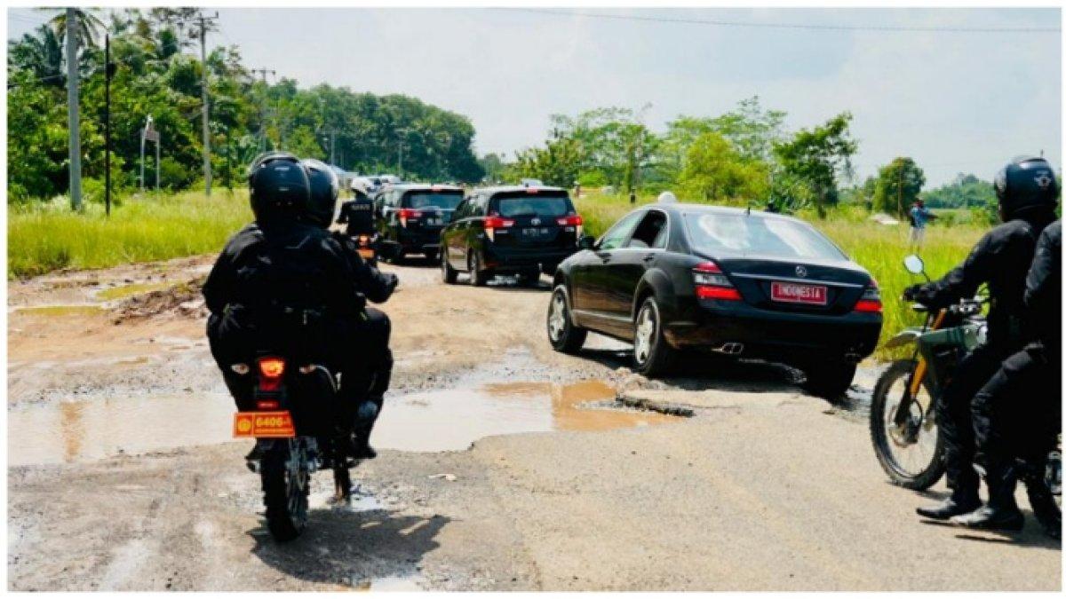 Foto Kondisi Jalan Rusak di Lampung yang Dilewati Jokowi, Banyak Kubangan, Mobil Lewat Pelan-pelan