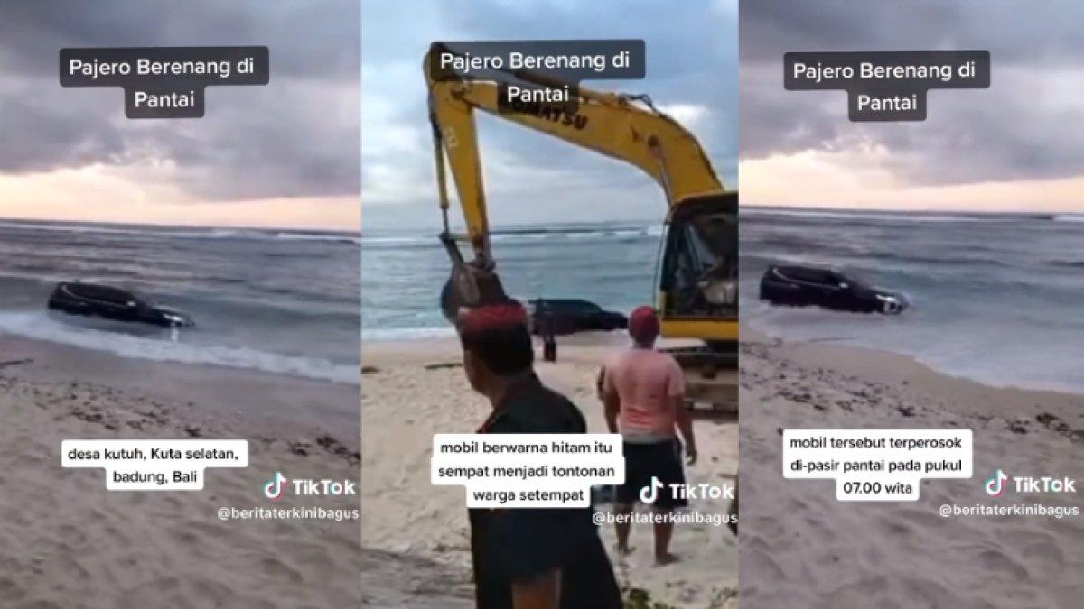 Sebuah video viral di TikTok memperlihatkan mobil Pajero berwarna hitam terjebak di Pantai Timbis, Kecamatan Kuta Selatan, Kabupaten Badung, Bali.