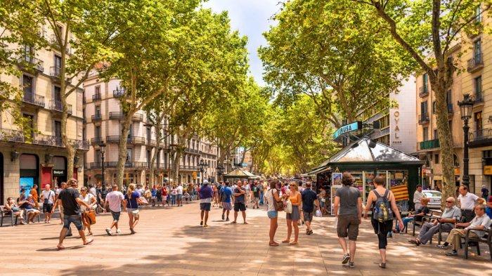 La Rambla menjadi spot wisata yang paling banyak dikunjungi turis saat berlibur di Barcelona.