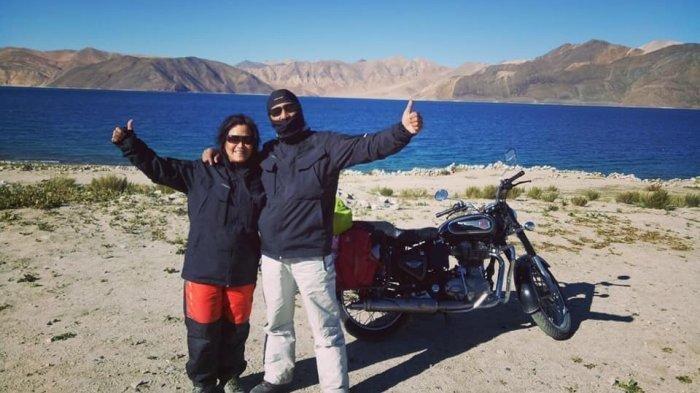 Potret Darius Sinathrya dan Donna Agnesia telah berhasil merampungkan misi sampai puncak Himalaya naik motor.