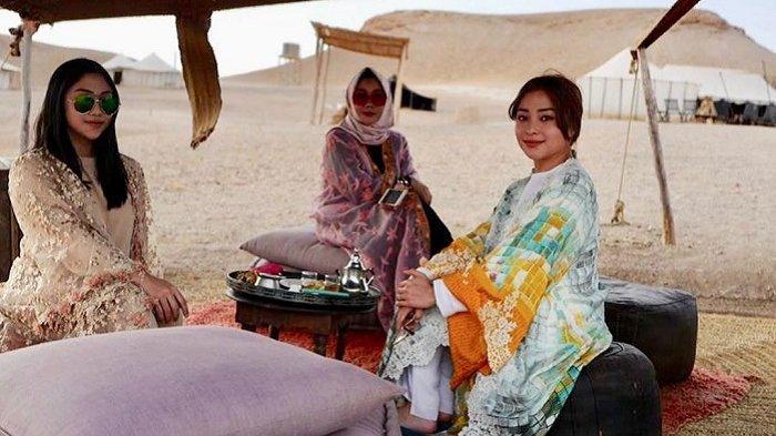 Nikita Willy menikmati momen liburan ke Maroko bersama ibu dan adik dan naik unta di Gurun Sahara.