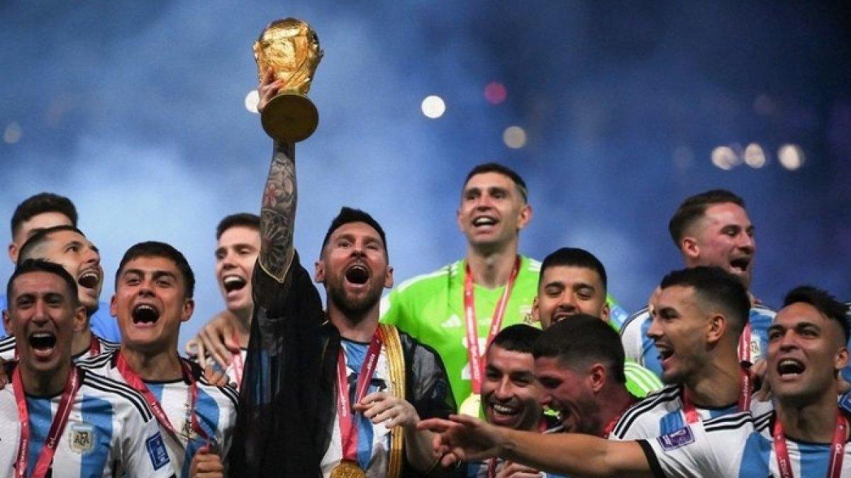 Dalam perayaan kemenangan Argentina, Lionel Messi terlihat mengangkat trofi Piala Dunia 2022 sambil mengenakan jubah hitam yang disebut bisht.