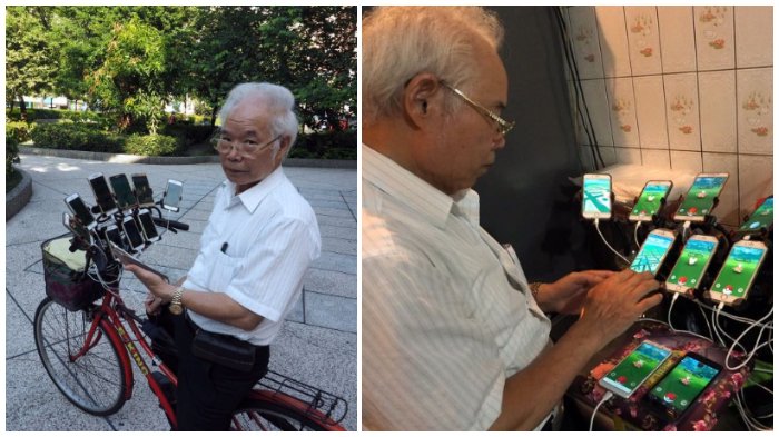 Kakek 70 Tahun Pasang 11 Smartphone di Sepedanya untuk Main Pokemon Go, tapi Semua Itu Belum Cukup!