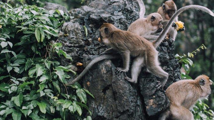 Cagar Alam Manggir, tempat wisata antimainstream di Kediri, Jawa Timur untuk berinteraksi dengan monyet ekor panjang.