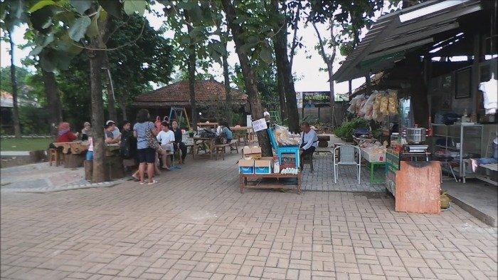 Rekomendasi tempat makan unik Restoran Tahu Na Po Tet, pengunjung bisa kulineran sambil duduk santai di taman.