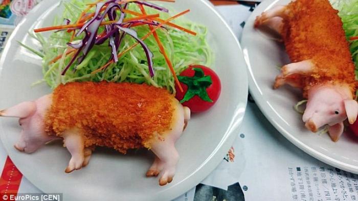 Jepretan keren itu menunjukkan seekor babi kecil mengambang di sup miso serta babi goreng berbaring di samping salad. Ini wujudnya.