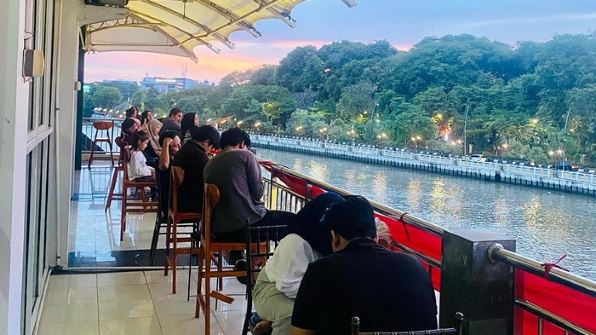 Nora Kafe menjadi spot nongkrong di Siring Menara Pandang Banjarmasin, Kalsel, yang menawarkan pemandangan Sungai Martapura dari ketinggian.