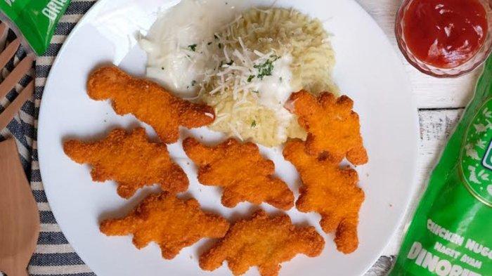 Kreasi resep nuget dinosaurus untuk menu makan siang enak, bentuknya lucu dan rasanya mantap.