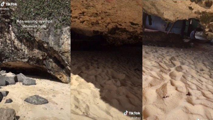 Viral warung nyempil di bawah batu karang besar di Pantai Sadeng, Gunung Kidul, Yogyakarta. Masuknya harus merangkak.