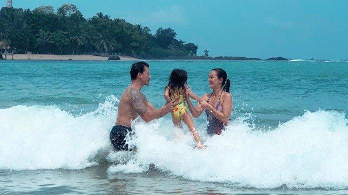 Liburan Artis - Traveling ke Pantai Sambolo, Atiqah Hasiholan Ajak Putrinya Kenalan Sama Ombak