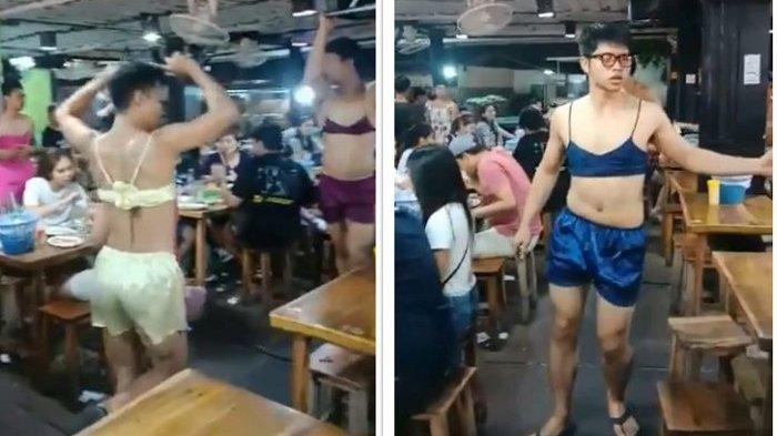 Sebuah video viral di medsos yang memperlihatkan para pelayan pria di Thailand yang melayani pengunjung kafe hanya dengan bra dan kolor.