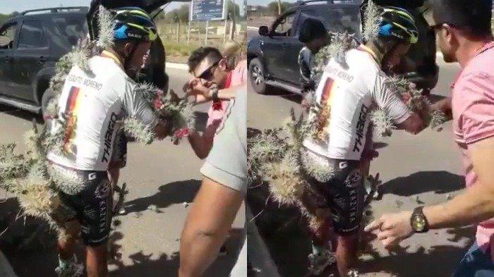 Viral di Medsos, Pengendara Sepeda yang Tubuhnya Dipenuhi Belasan Kaktus