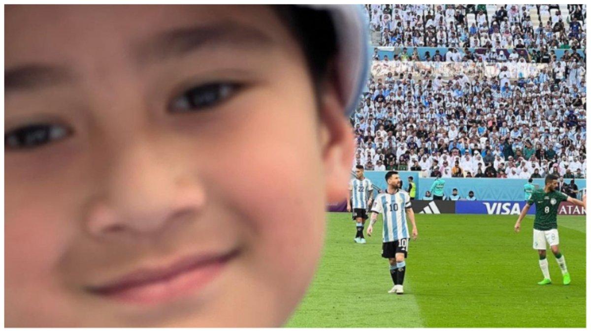 Raffi Ahmad juga membagikan momen Rafathar yang sedang "berfoto bareng" Lionel Messi.