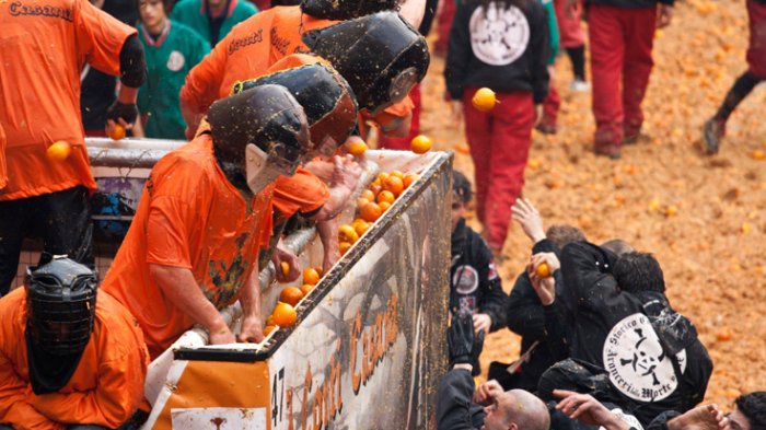 Ivrea Carnival 2017 - Dicap sebagai Festival Tertua di Italia, Begini Keseruan 'Perang' Lempar Jeruk