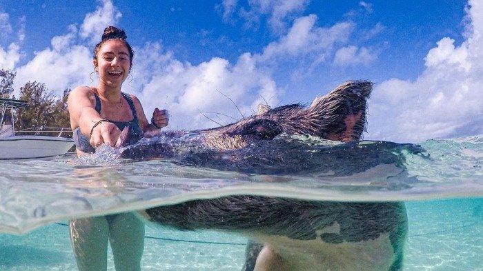 Pulau yang bernama Big Mayor Cay ini justru lebih dikenal oleh wisatawan dengan nama Pig Island atau Pulau Babi.