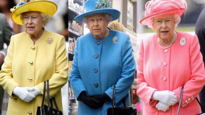 Ratu Elizabeth menghadiri hari pertama Royal Ascot dengan pakaian khasnya, mantel warna cerah, topi, bros dan tentu sarung tangan yang ikonik.