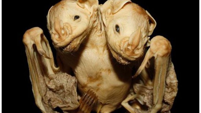 Seekor kelelawar berkepala dua ditemukan di Brasil. Ia ditemukan dalam keadaan mati di bawah pohon mangga pada 2001 silam.