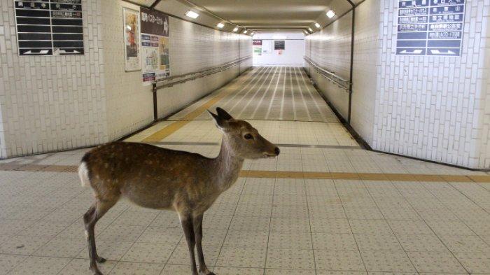 Virus corona membuat pemandangan jauh berbeda. Jumlah turis yang liburan ke Nara turun drastis. Akibatnya, rusa-rusa di sana meninggalkan taman.