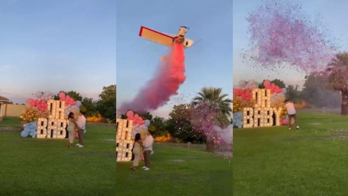 Sebuah pesawat yang menaburkan bubuk di acara gender reveal tiba-tiba kecelakaan dan jatuh, kondisi pilot tergeletak di reruntuhan pesawat.