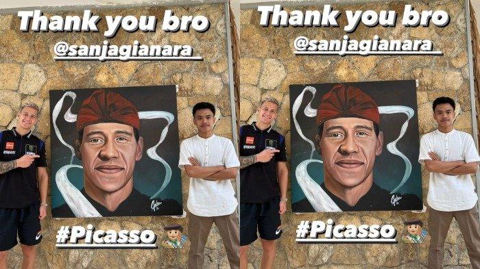 Jelang Akhir MotoGP 2022, Seniman Lombok Hadiahi Fabio Quartararo Lukisan Pakai Udeng Khas Bali