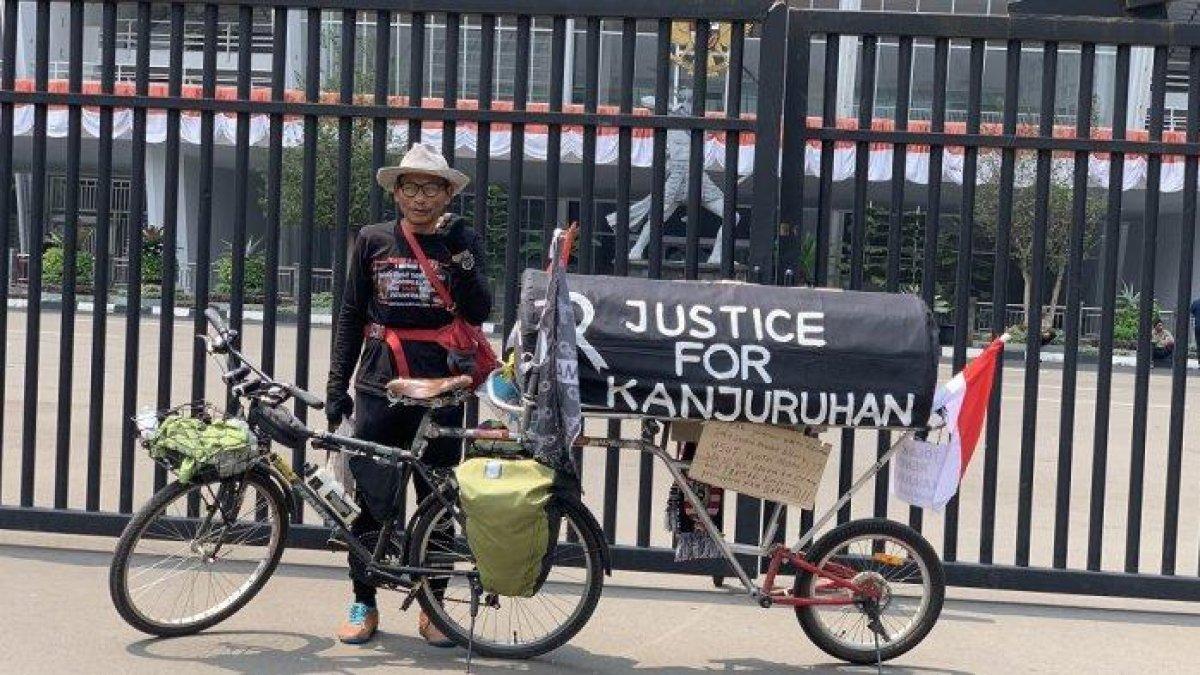 Seorang pria berusia 53 tahun nekat gowes sepeda sejauh 800 km demi memperjuangkan korban Tragedi Kanjuruhan, meski sempat mendapat intimidasi.