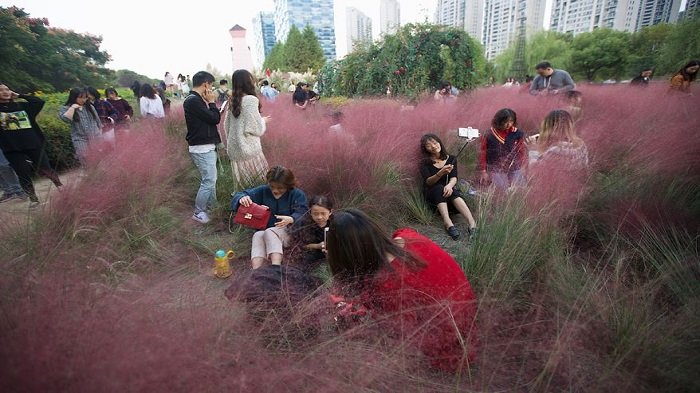 Wisatawan Pemburu Foto Selfie Merusak Taman Rumput Merah Muda Langka di China