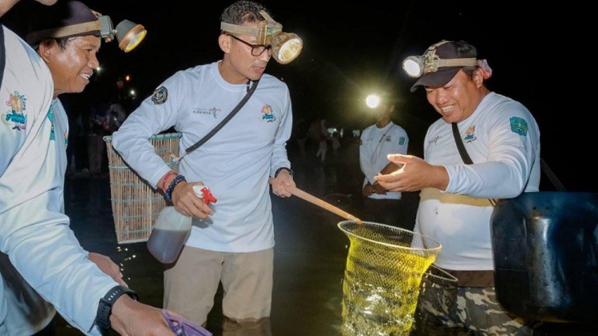 Momen Sandiaga Uno Mencoba Sensasi Nyulo, Rela Basah-basahan saat Malam Hari