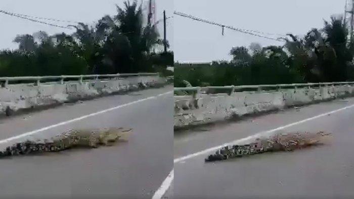 Viral Video Buaya Berkeliaran di Jalan Raya Gara-gara Sungai Meluap, Bikin Panik Pengendara