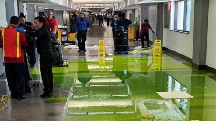 Viral cairan hijau aneh rembes dari atap bandara sampai membanjiri area terminal Bandara Internasional Miami, Amerika Serikat.