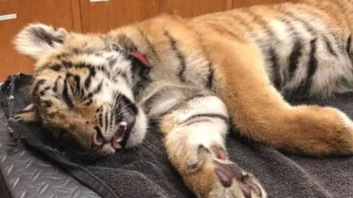 Petugas patroli perbatasan Amerika Serikat menemukan seekor anak harimau berada di dalam sebuah tas.