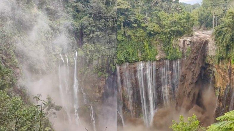 Video viral momen saat Air Terjun Tumpak Sewu di Kabupaten Lumajang mengalami banjir lahar.