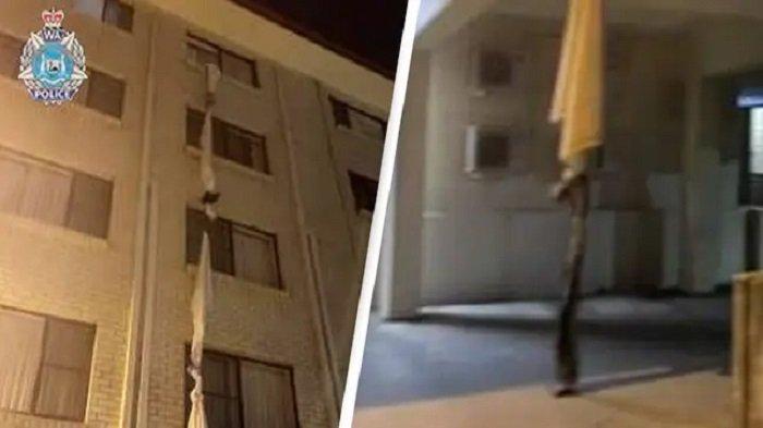 Seorang pria melarikan diri dari karantina kotel menggunakan sprei yang diikat pada jendela dari lantai empat