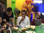 Jokowi berwisata kuliner di kedai Ucok Durian di Jalan KH Wahid Hasyim Nomor 30-32 Kota Medan bersama keluarga dan kerabat Presiden.