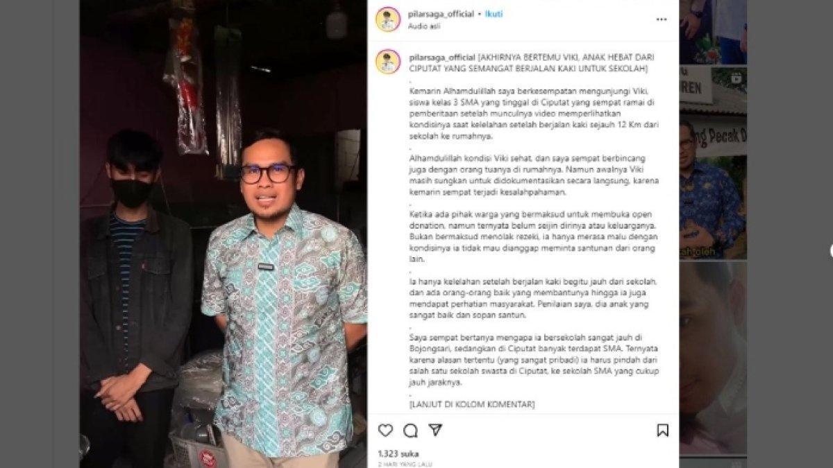 Viky pelajar viral di Ciputat yang berjalan 16 kilometer untuk bersekolah akhirnya mendapat beasiswa dari Dinas Pendidikan Tangerang Selatan.
