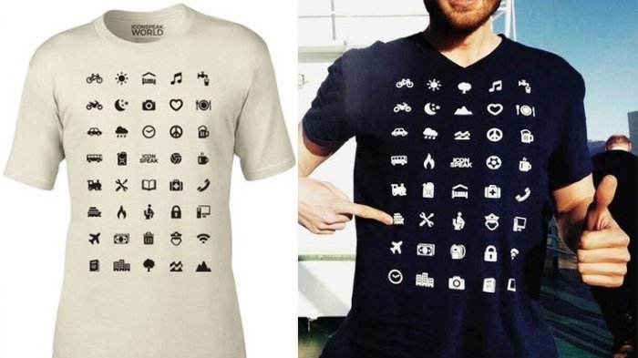 Kini tak ada alasan ogah keliling dunia hanya karena terkendala bahasa. Kaus dengan icon unik ini jadi solusinya.