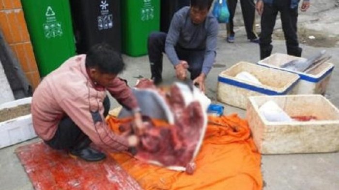 Foto yang viral ini adalah foto lumba-lumba yang sudah dipotong-potong oleh nelayan.