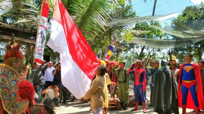 Puluhan seniman yang tergabung dalam Komunitas Seniman Borobudur Indonesia (KSBI) 15 menggelar upacara bendera dalam rangka HUT ke-72 Kemerdekaan RI.